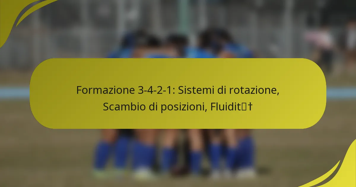 La formazione 3-4-2-1 è un assetto tattico nel calcio che combina una solida struttura difensiva con il potenziale per un gioco d’attacco dinamico. Utilizzando tre difensori centrali e quattro centrocampisti, questa formazione promuove fluidità attraverso la rotazione dei giocatori e gli scambi di posizione, consentendo alle squadre di adattarsi efficacemente durante le fasi offensive e difensive.